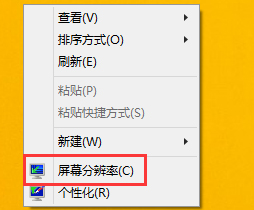 1、右键单击“桌面”,在跳出来的对话框中选中“屏幕分辨率”选项。