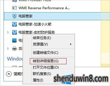 3、需要注意的时,大概有时大家没有法判断哪个进程是属于你要关闭的软件,那么大家可以打开该进程右键选中转到详细信息便可查看描述来判断。