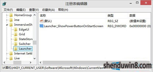 2、在注册表中依次展开在左侧列表中的:“HKEY_CURRENT_UsER\software\Microsoft\windows\CurrentVersion\Immersiveshell”;